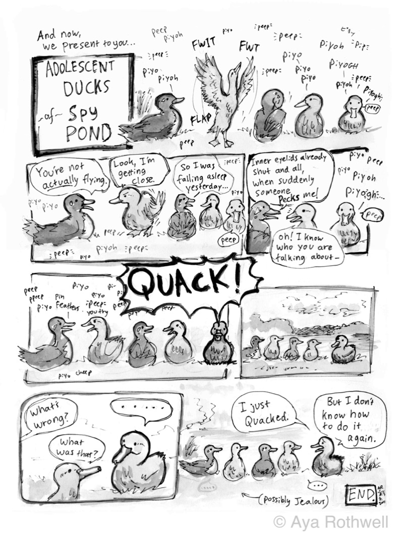 Note: This comic was inspired by watching juvenile ducks at Spy Pond, MA.